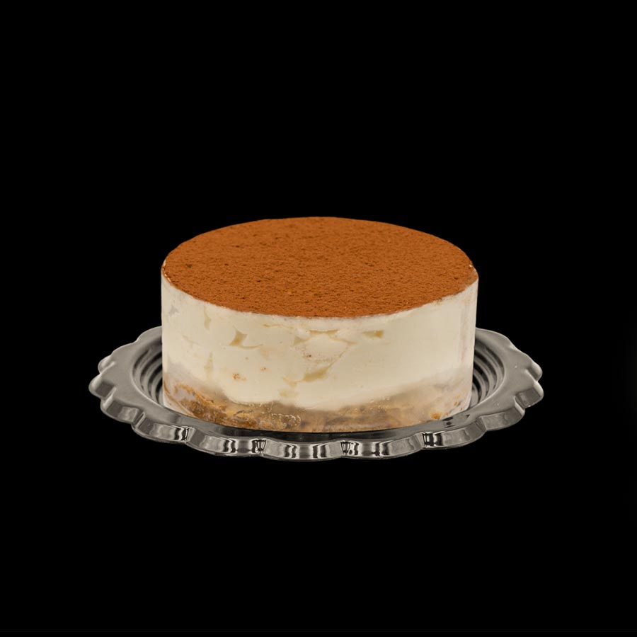 Semifreddo al tiramisù su savoiardi con bagna al caffè e polvere di cacao.